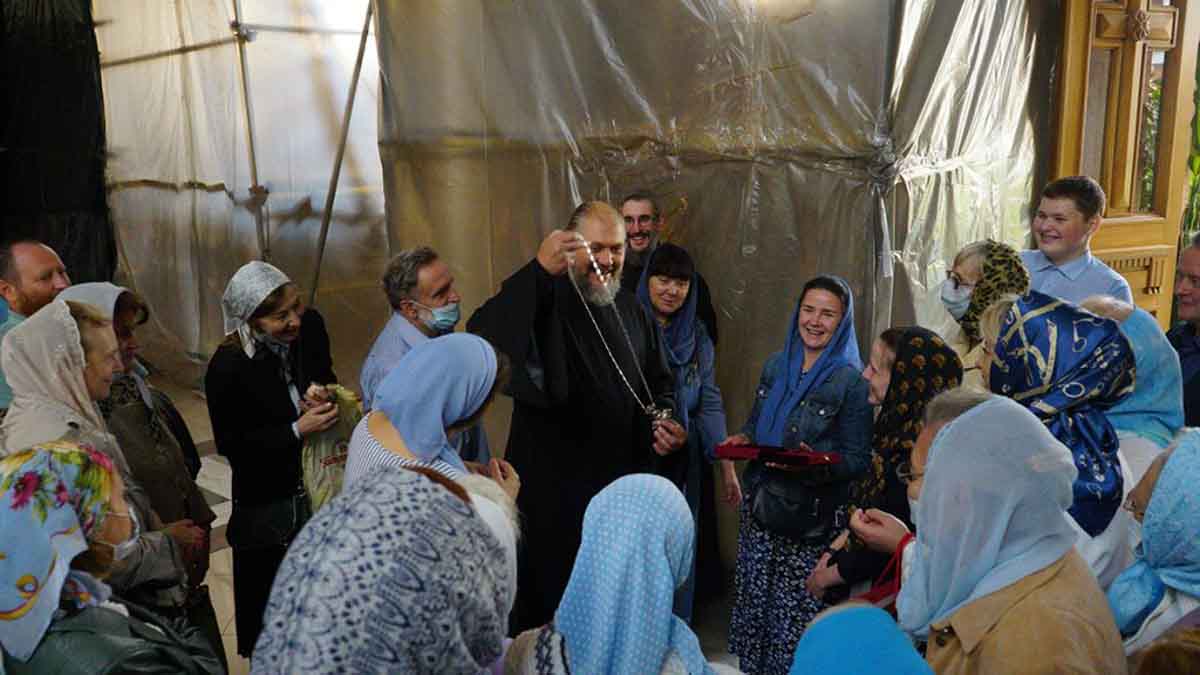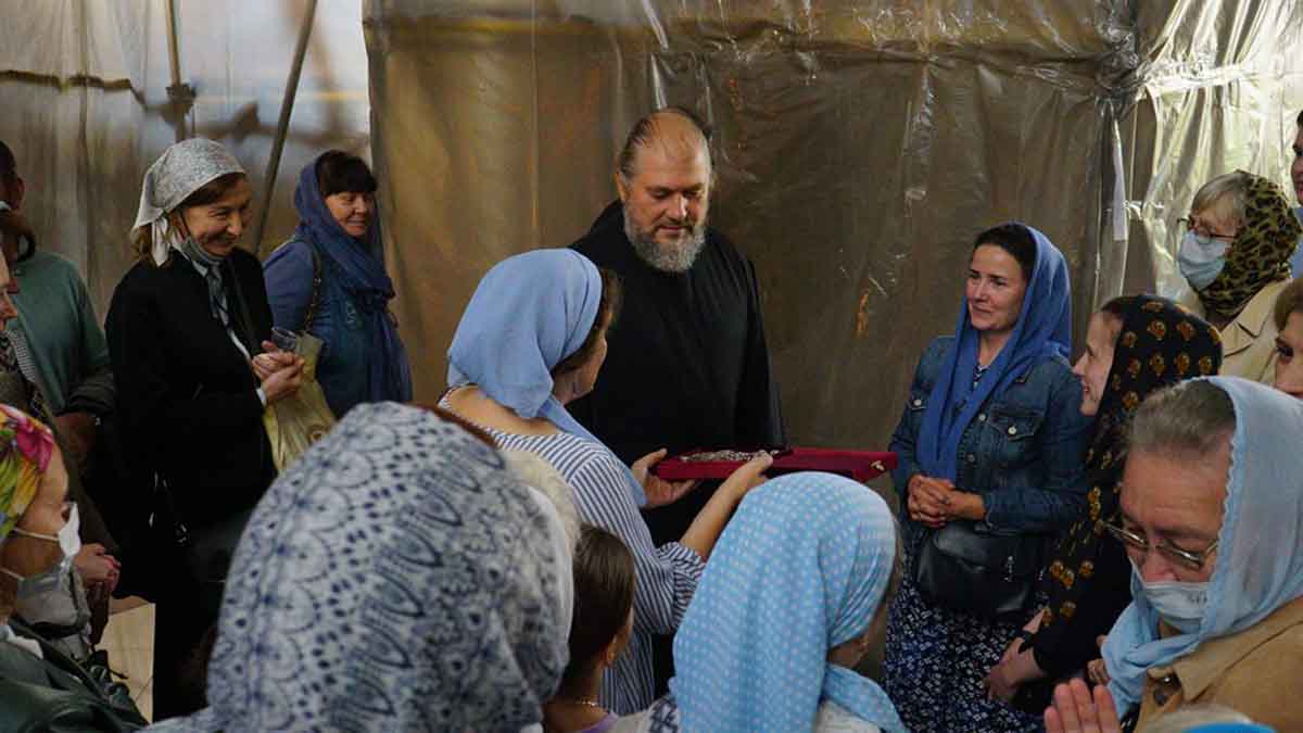 В самый день праздника в нашем храме была совершена Божественная литургия. По окончании литургии прихожане храма преподобного Василия Исповедника у Рогожской заставы поздравили настоятеля храма протоиерея Олега Егорова с днем рождения, который отмечается 12 августа. С искренней любовью и благодарностью отцу Олегу был подарен очень красивый наперсный крест с украшениями.