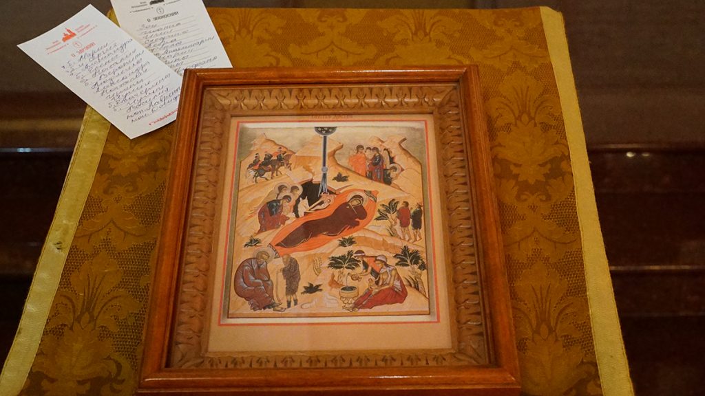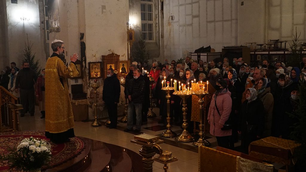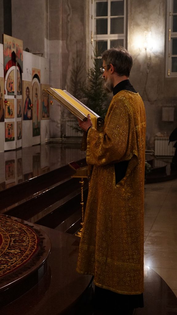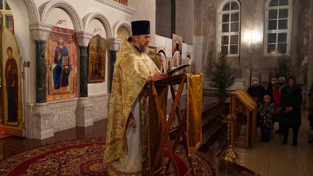 Протоиерей Олег Егоров поздравил верующих с Рождеством Христовым и зачитал Рождественское послание Патриарха Московского и всея Руси Кирилла.