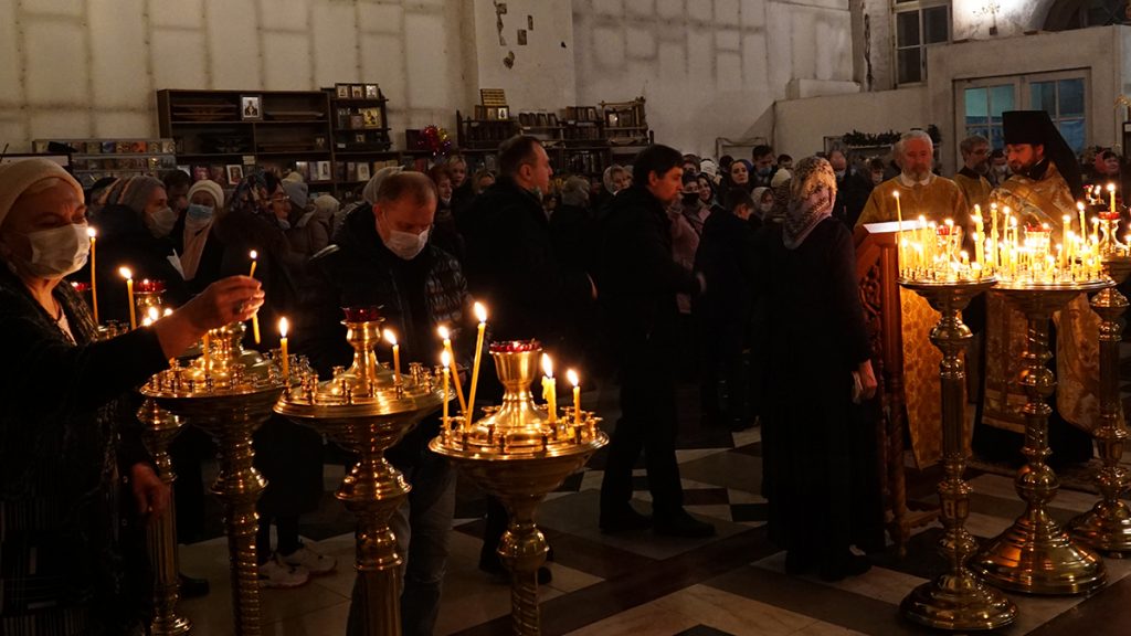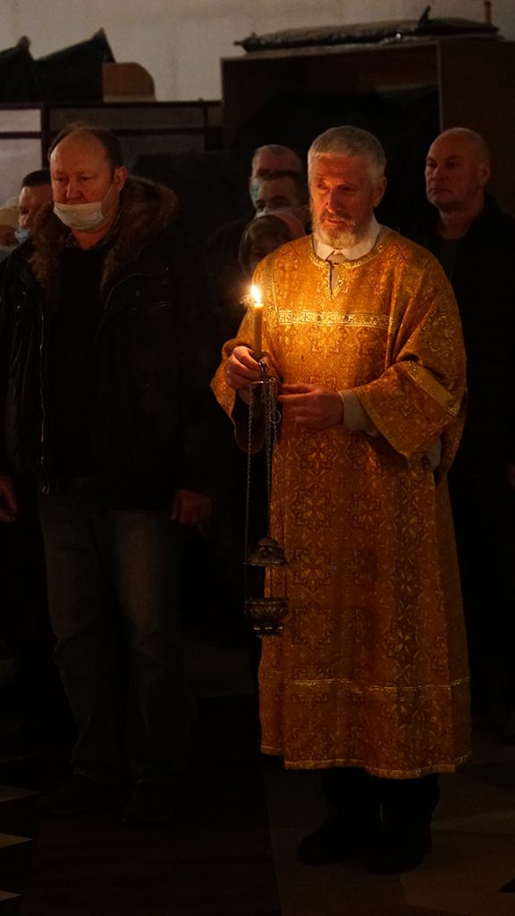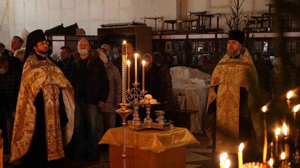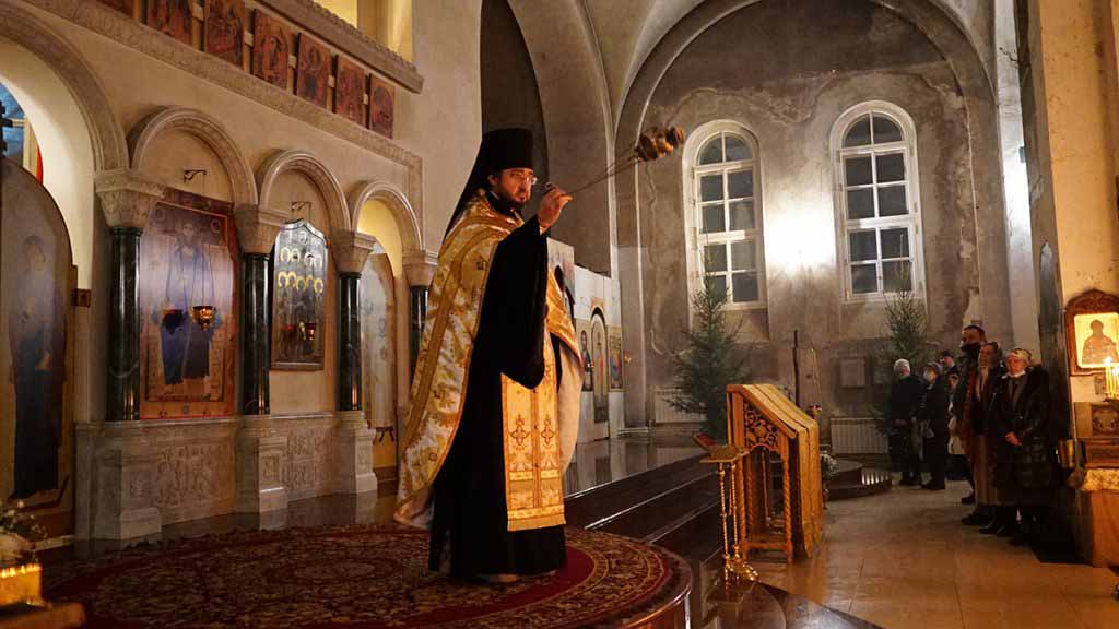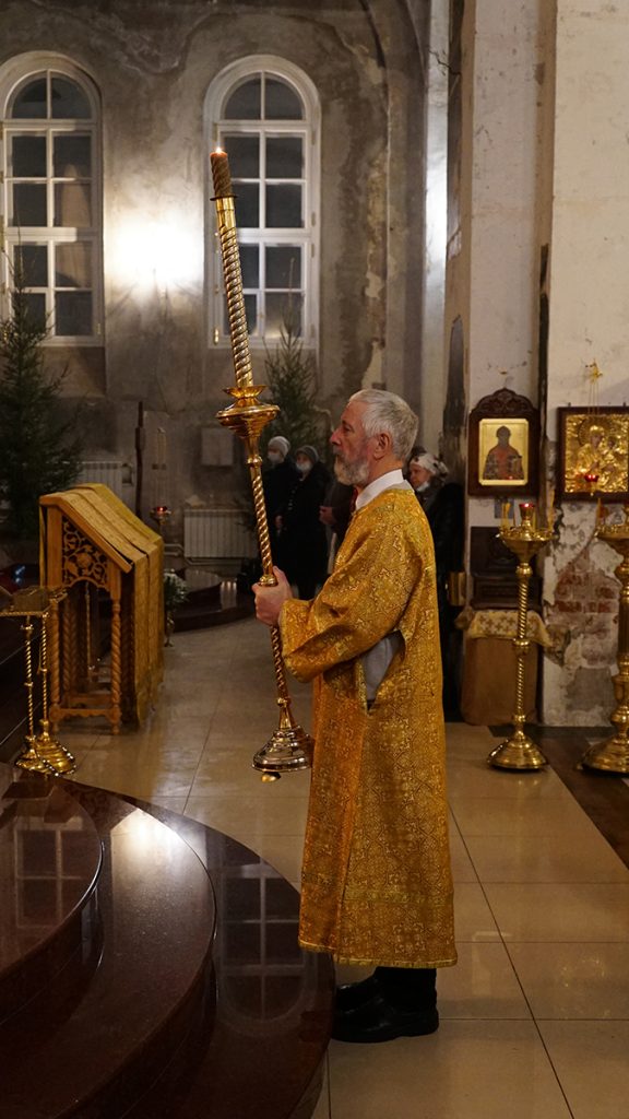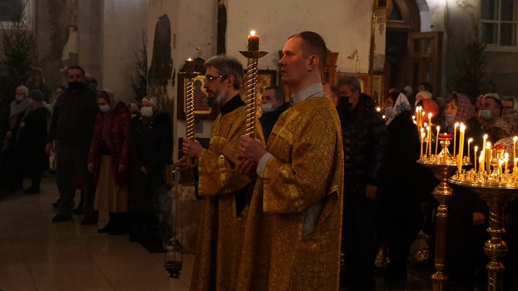 В ночь с 6 на 7 января 2021 года, в праздник Рождества Господа Бога и Спаса нашего Иисуса Христа, благочинный храмов Покровского церковного округа, настоятель храма преподобного Василия Исповедника у Рогожской заставы протоиерей Олег Егоров в сослужении клирика храма игумена Серафима (Кравченко) совершил череду рождественских богослужений ― великое повечерие, утреню и Божественную литургию святителя Иоанна Златоуста.