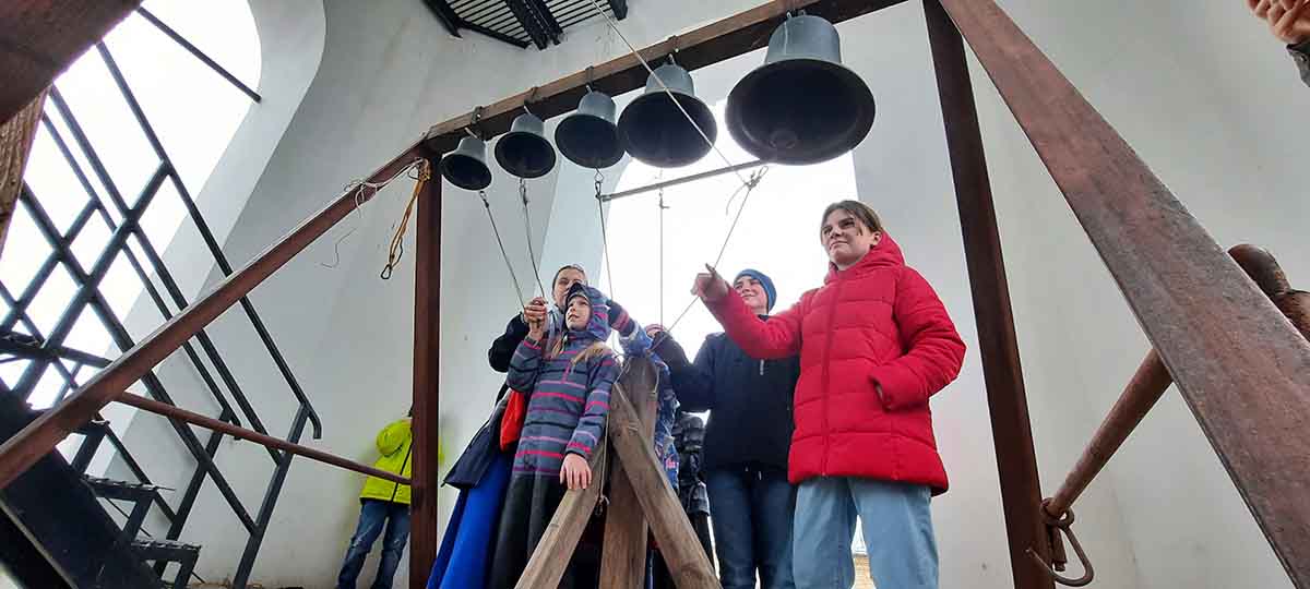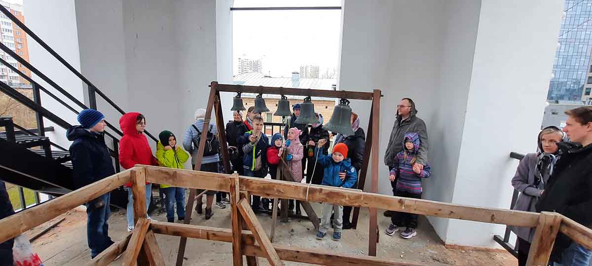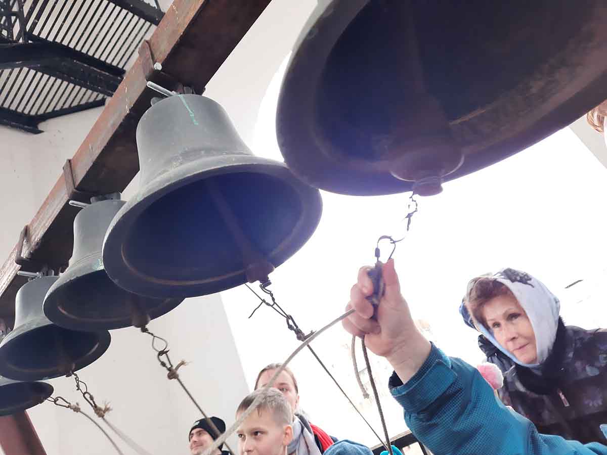 В Светлый праздник Христова Воскресения, по благословению настоятеля храма протоиерея Олега Егорова, ученики воскресной школы вместе с родителями, по традиции, поднялись на колокольню, где под руководством звонаря Юлии Швыркиной, приняли участие в создании пасхального перезвона. Также была проведена экскурсия по храму с рассказом историка и писателя, прихожанки нашего храма, Елены Леонидовны Петровской, о реставрации недавно открытых уникальных росписей. Затем для всех желающих было предложено праздничное чаепитие.