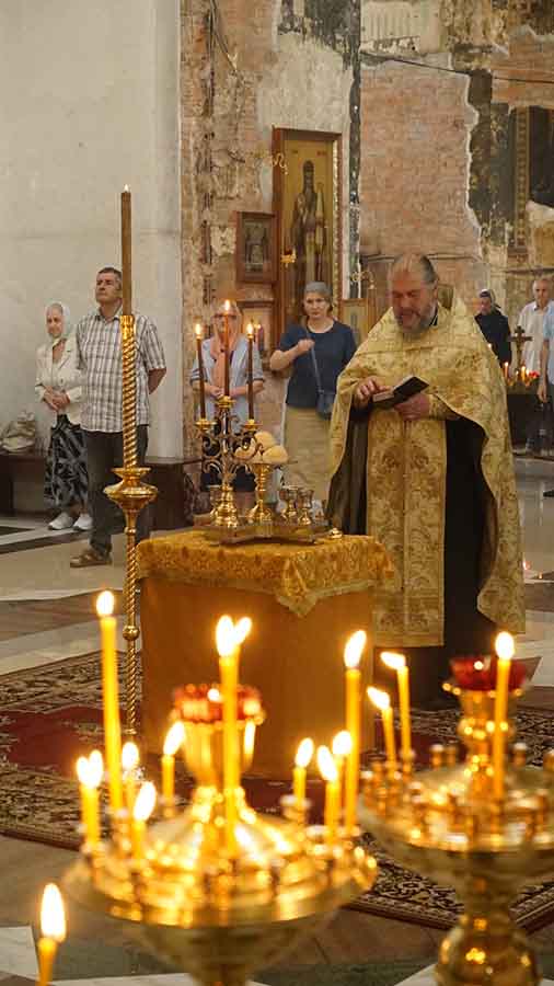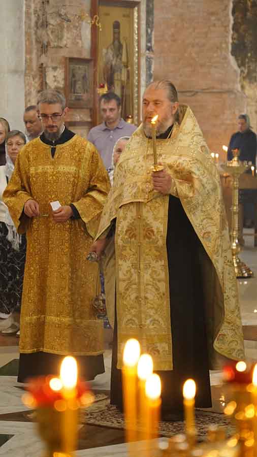 Накануне вечером 11 июля состоялось праздничное всенощное бдение с литией. Богослужение совершил благочинный храмов Покровского церковного округа, настоятель храма протоиерей Олег Егоров в сослужении клирика храма священника Владимира Родионова.