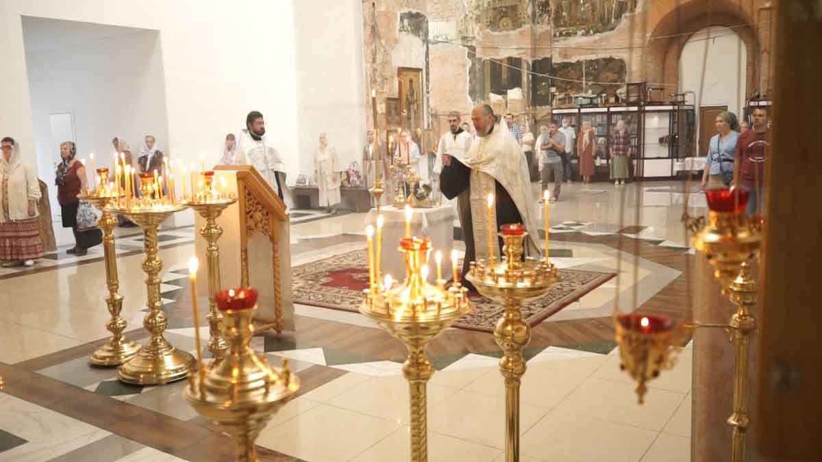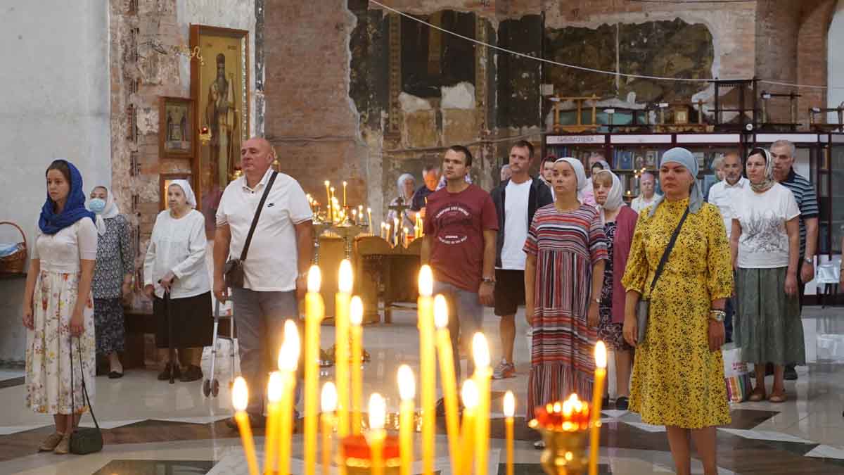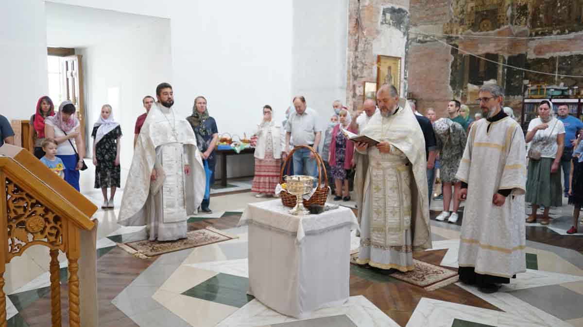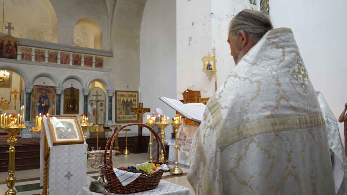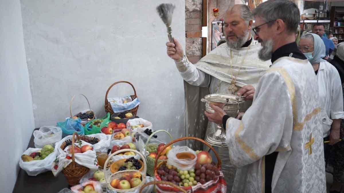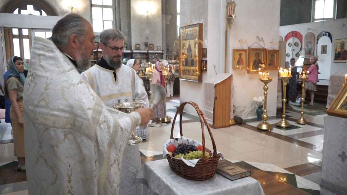 После заамвонной молитвы, при пении тропаря и кондака праздника, духовенством храма было совершено освящение принесенных плодов.