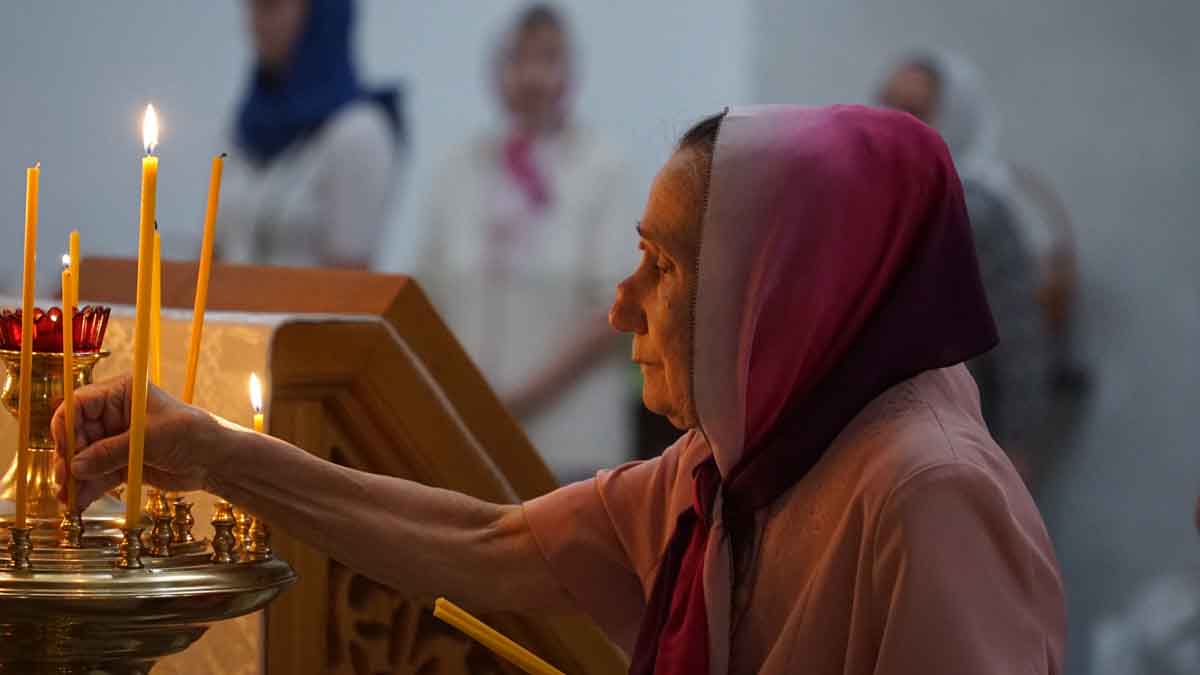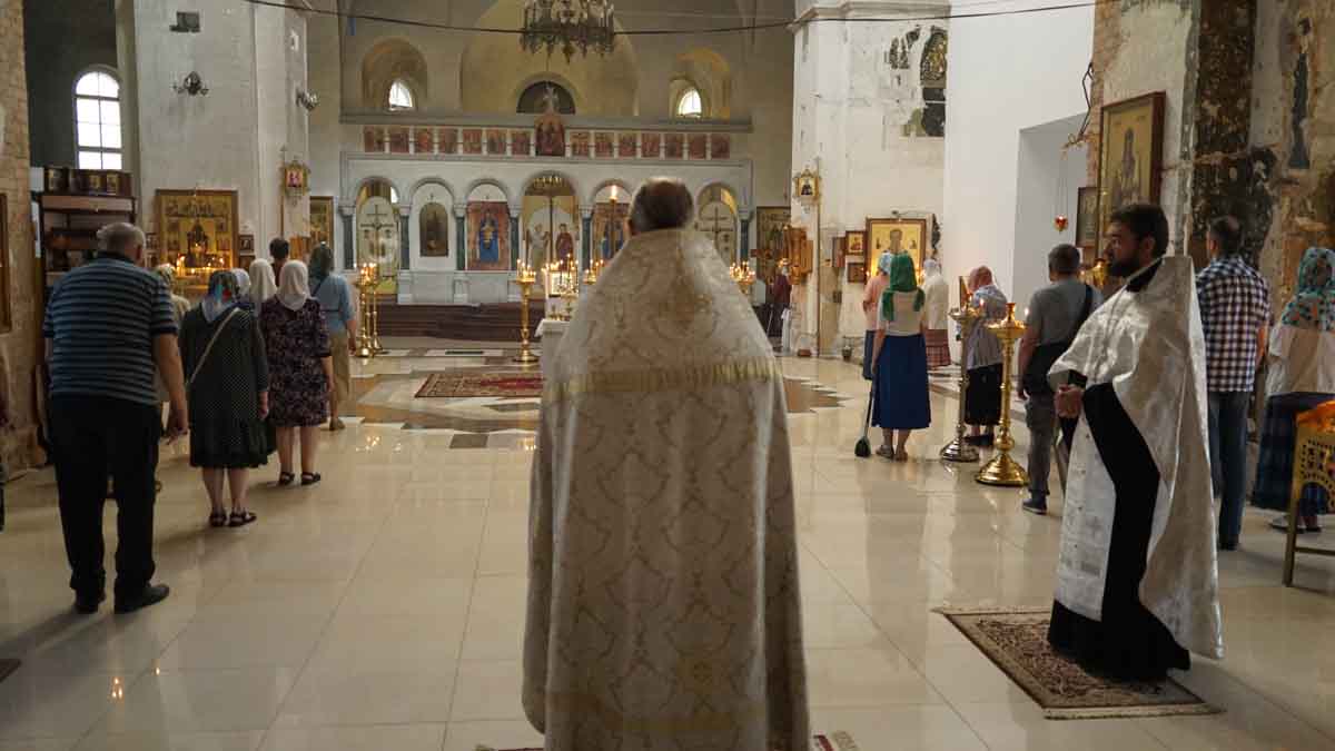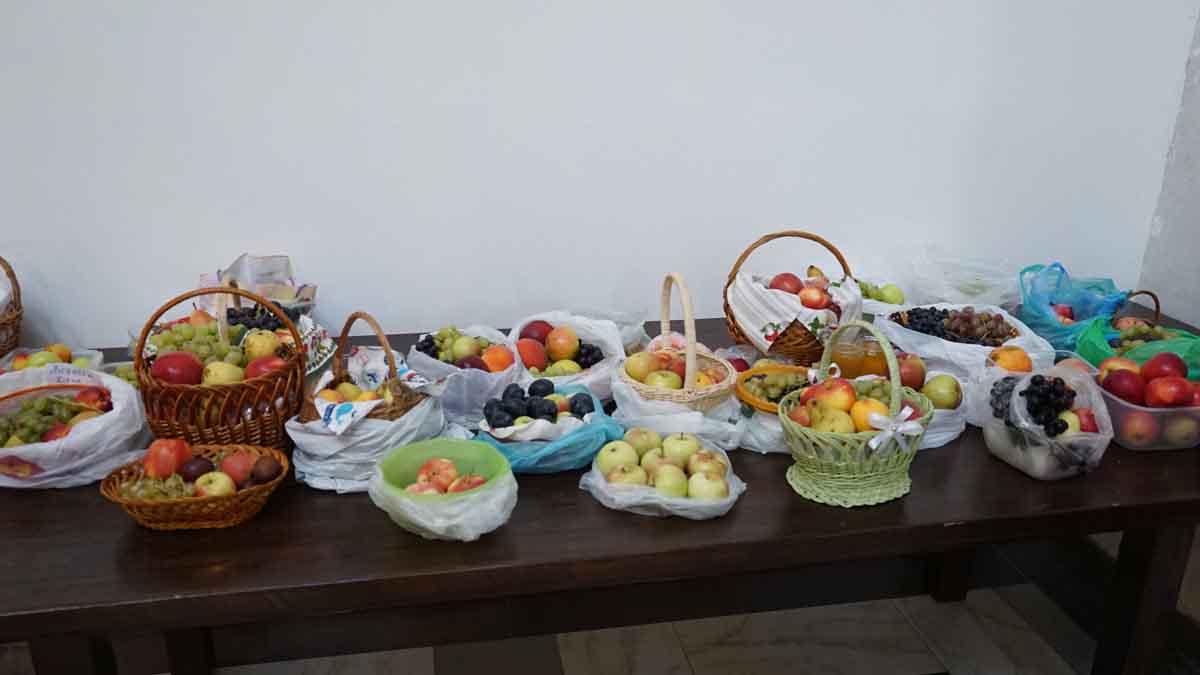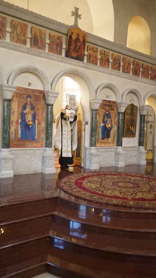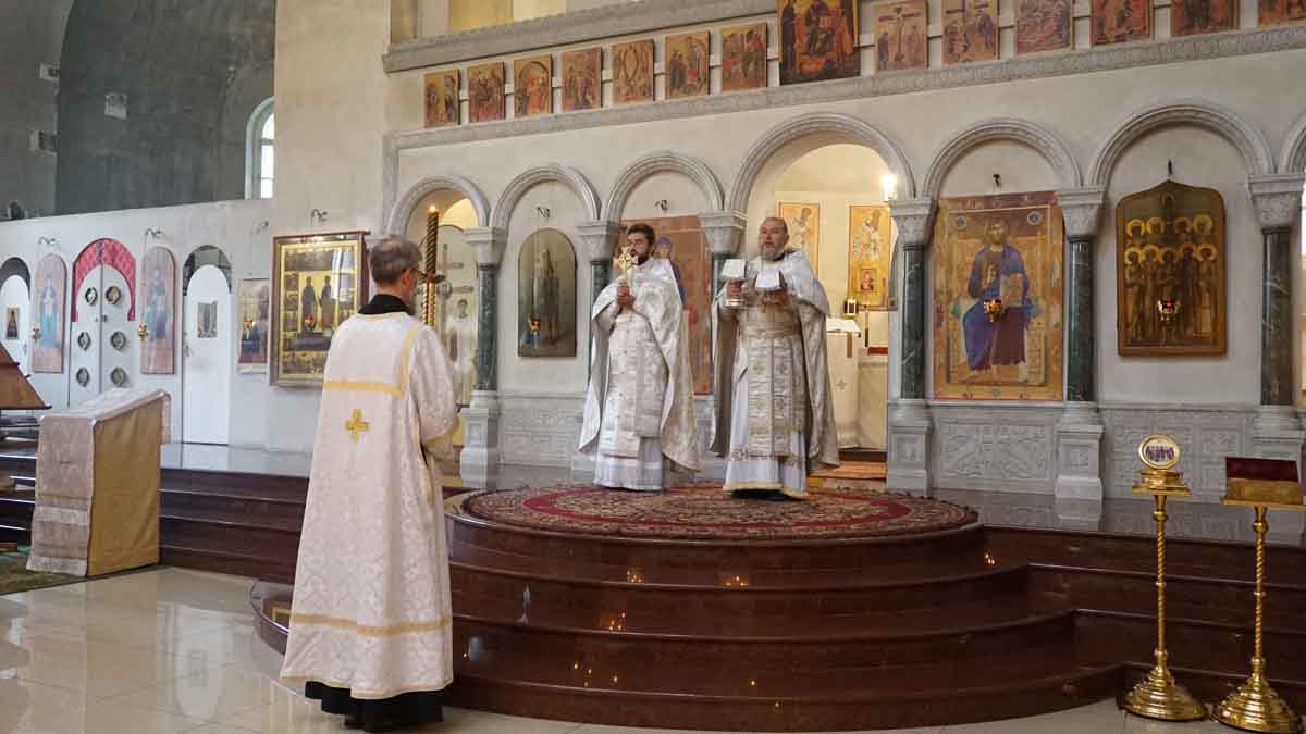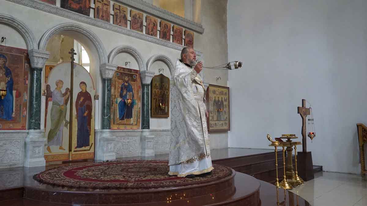После заамвонной молитвы, при пении тропаря и кондака праздника, духовенством храма было совершено освящение принесенных плодов.