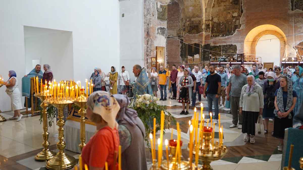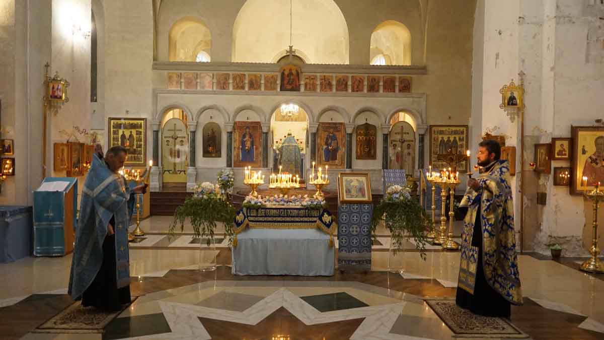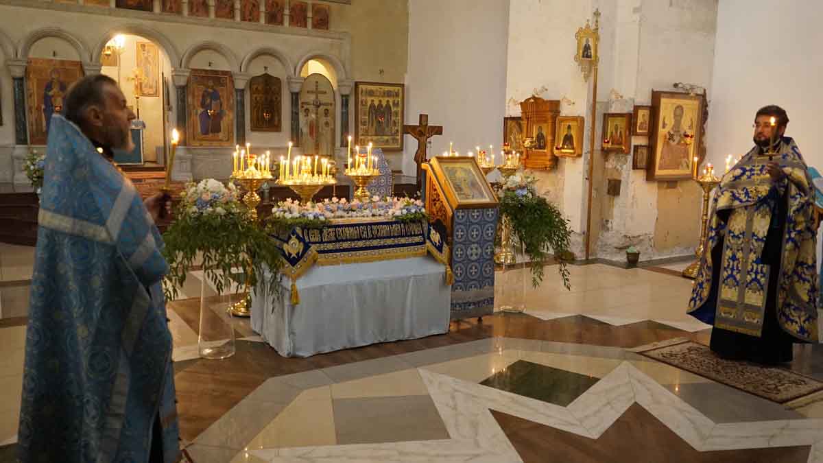 На утрени, под торжественное пение праздничного тропаря, был совершен вынос Плащаницы Божией Матери.