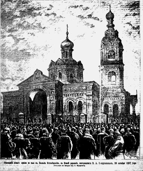 В воскресенье 26 октября (8 ноября по новому стилю) 1897 года освящение храма и Божественную литургию совершил митрополит Московский и Коломенский Сергий. Правый и левый приделы были освящены 15 и 22 ноября 1897 года.