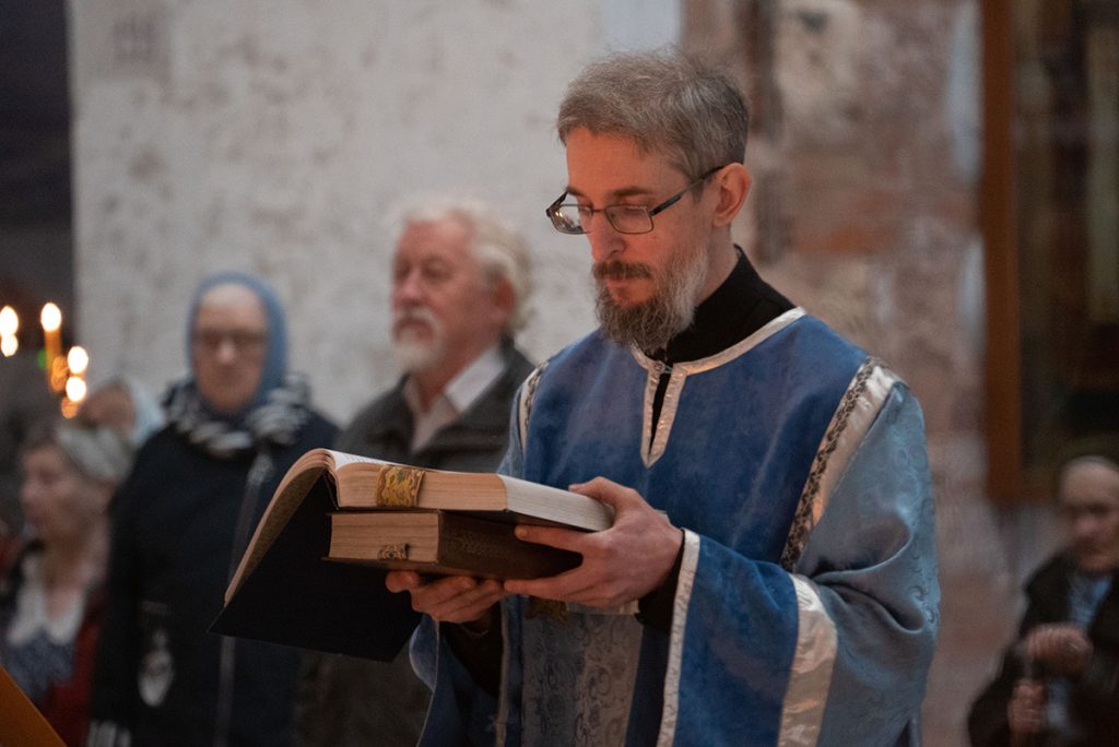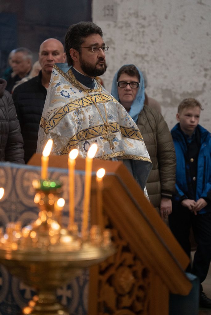 7 апреля в день праздника Благовещения Пресвятой Богородицы и день преставления святителя Тихона, Патриарха Московского и всея России, благочинный храмов Покровского церковного округа, настоятель храма прп. Василия Исповедника у Рогожской заставы протоиерей Олег Егоров совершил Божественную литургию святителя Иоанна Златоуста в сослужении клириков храма, игумена Серафима (Кравченко) и священника Владимира Родионова.