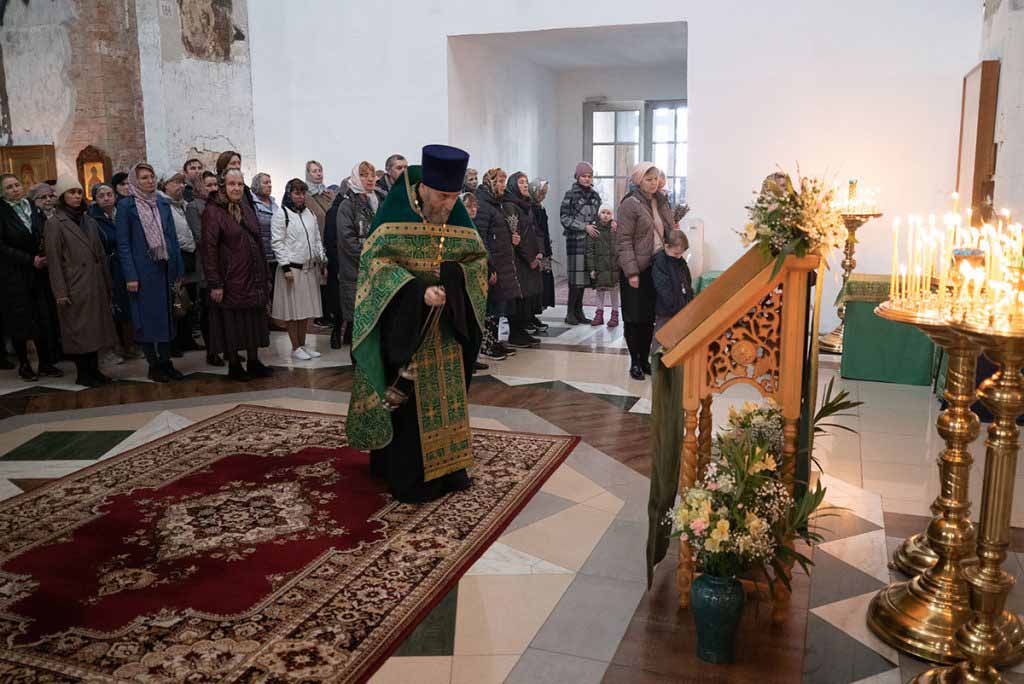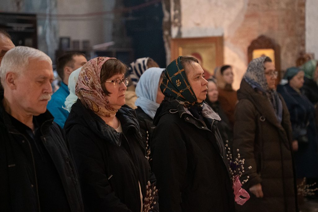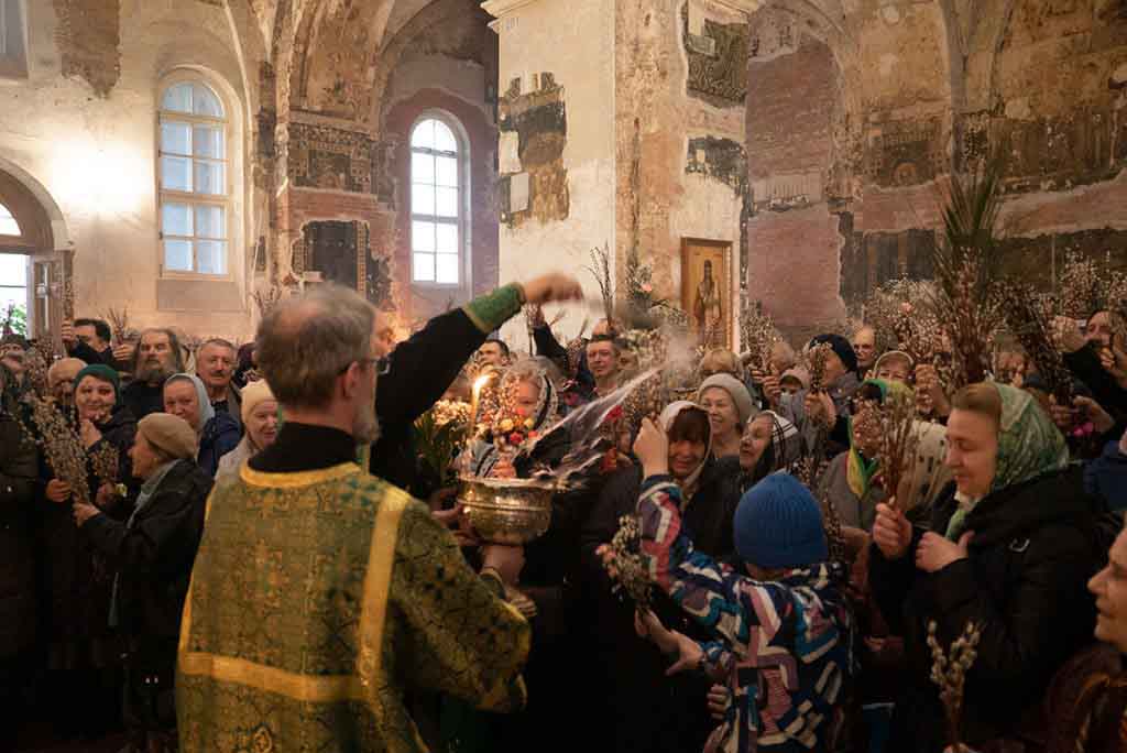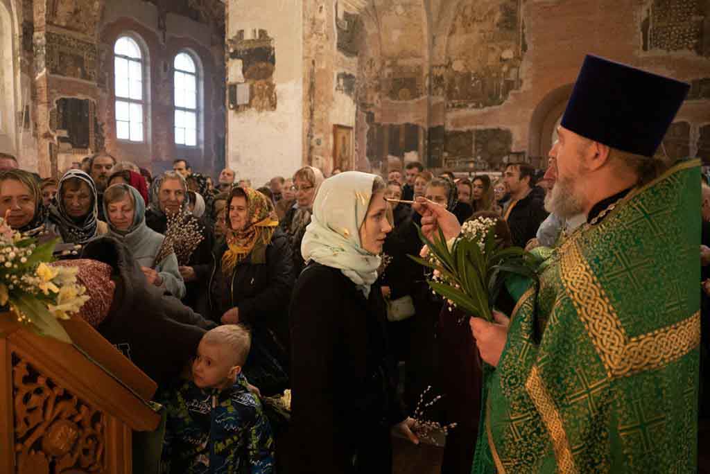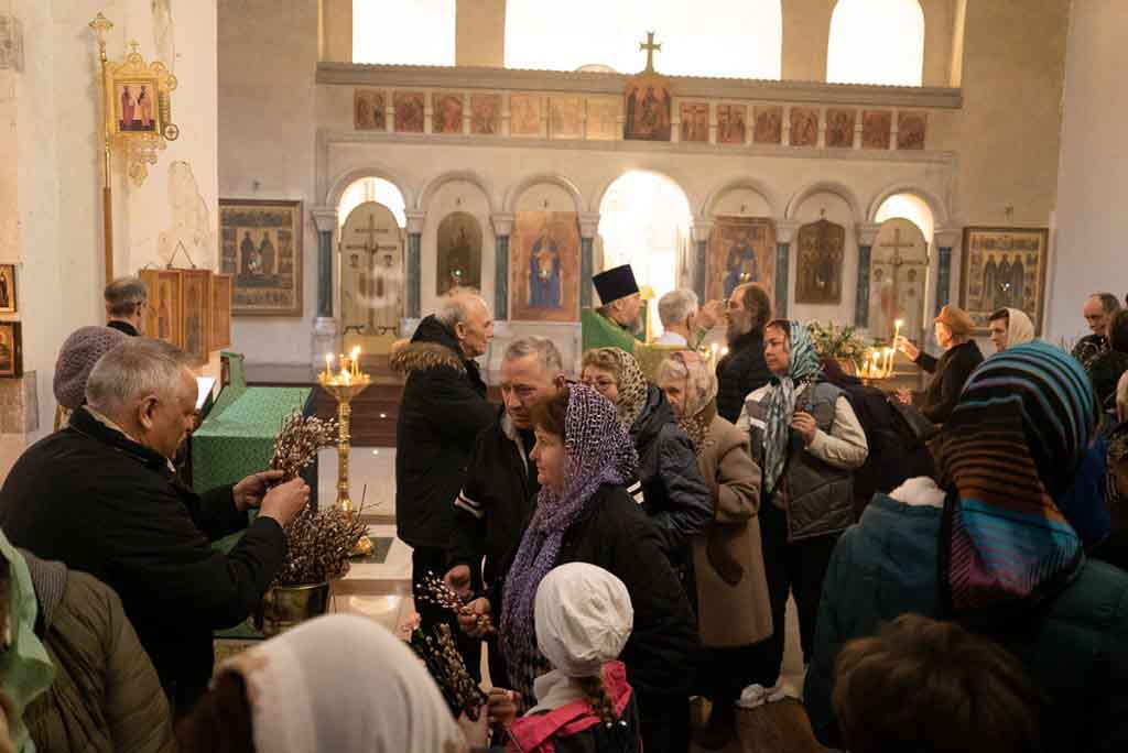 В нашем храме накануне состоялось всенощное богослужение, которое возглавил благочинный храмов Покровского церковного округа, настоятель храма протоиерей Олег Егоров в сослужении клириков храма игумена Серафима (Кравченко), иерея Владимира Родионова. После чтения Евангелия в центре храма был совершен чин освящения ваий.