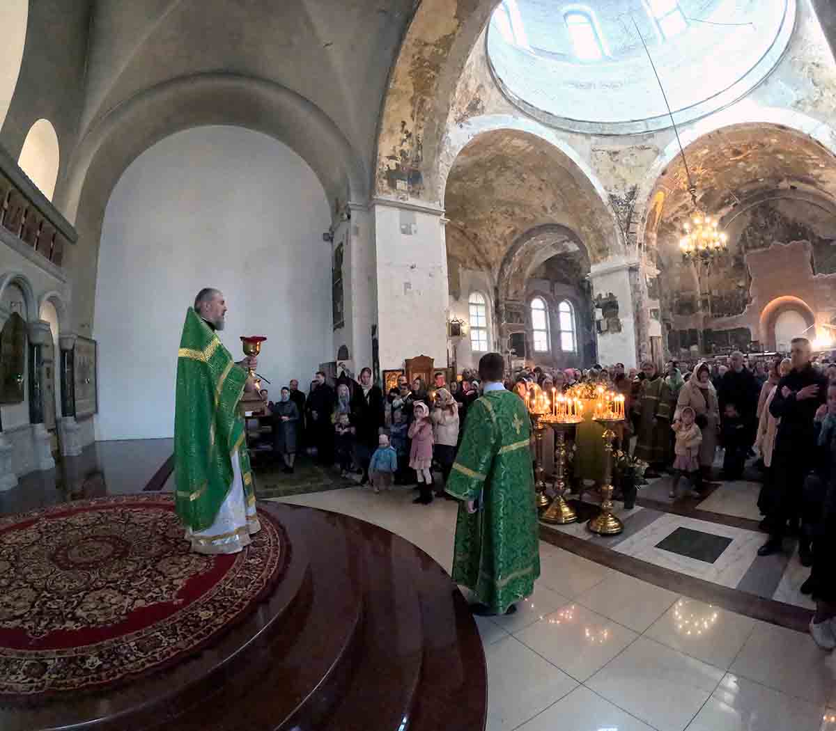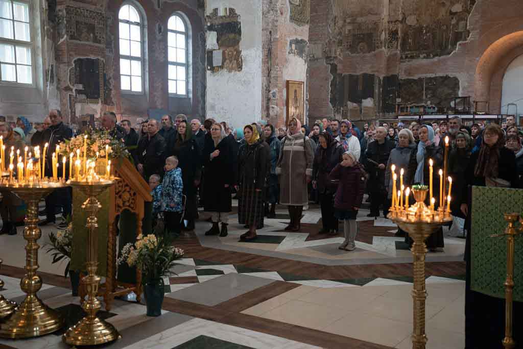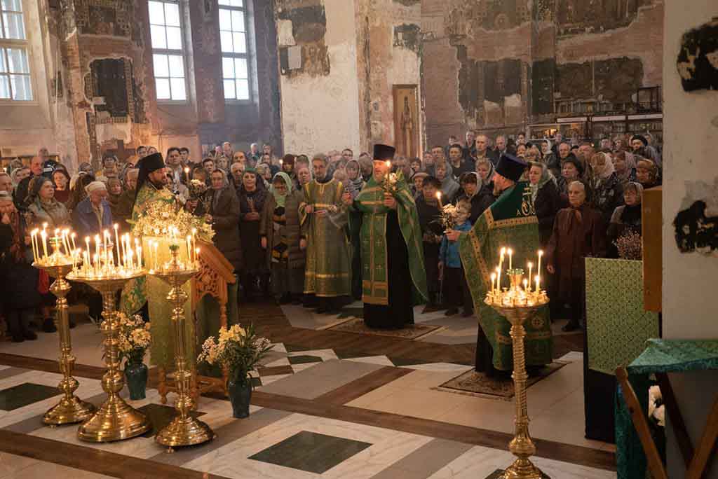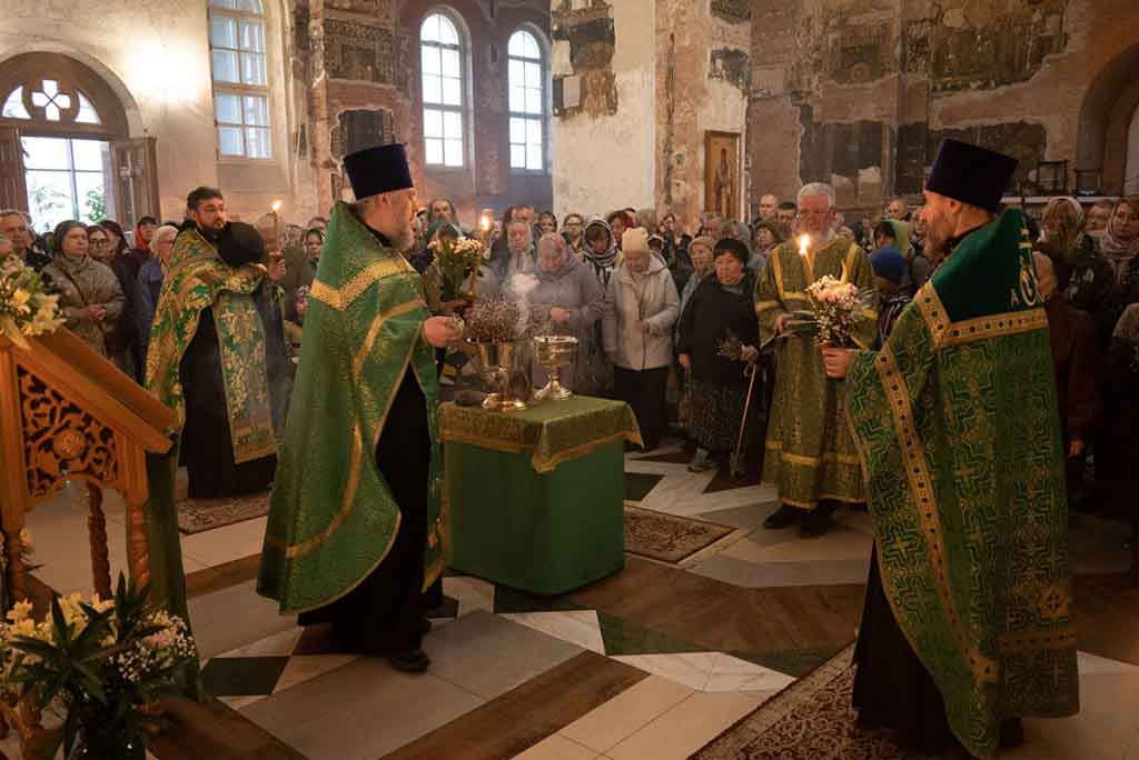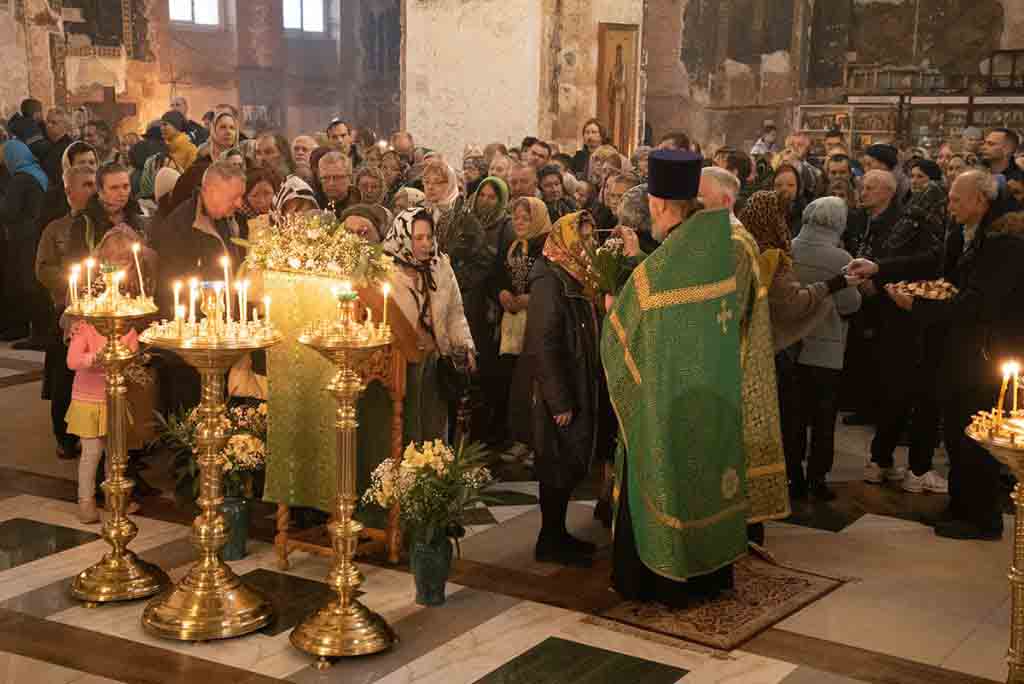 В нашем храме накануне состоялось всенощное богослужение, которое возглавил благочинный храмов Покровского церковного округа, настоятель храма протоиерей Олег Егоров в сослужении клириков храма игумена Серафима (Кравченко), иерея Владимира Родионова. После чтения Евангелия в центре храма был совершен чин освящения ваий.
