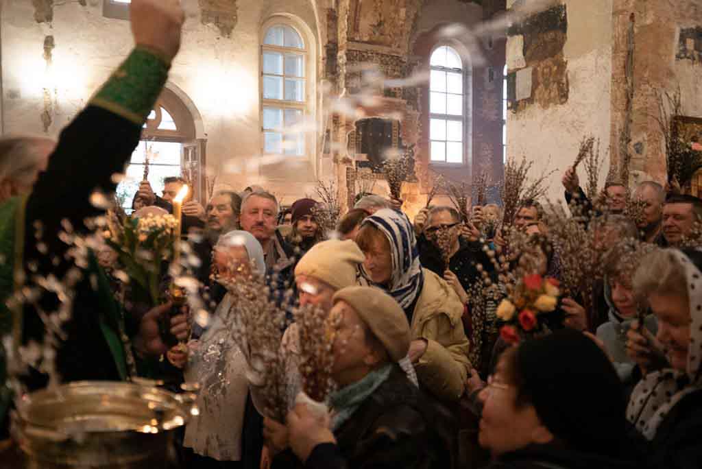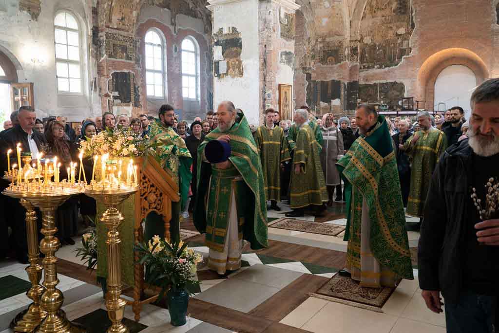 Вход Господень в Иерусалим, называемый в народе Вербным воскресеньем, отметили в храме прп. Василия Исповедника у Рогожской заставы.