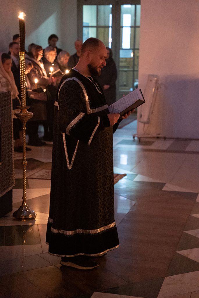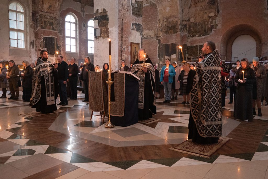 Вечером 13 апреля, в храме прп. Василия Исповедника у Рогожской заставы, прошло одно из самых торжественных богослужений — Утреня Великой Пятницы с чтением 12 Страстных Евангелий, которое возглавил благочинный храмов Покровского церковного округа, настоятель храма протоиерей Олег Егоров в сослужении клириков храма игумена Серафима (Кравченко), иерея Владимира Родионова. . Все это богослужение посвящено благоговейному воспоминанию спасительных страданий и крестной смерти Богочеловека.