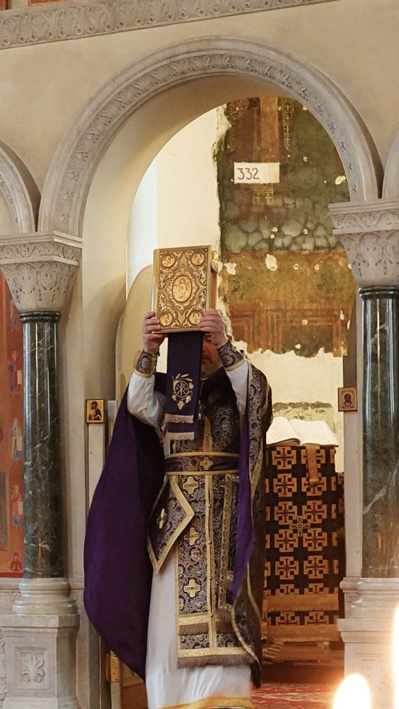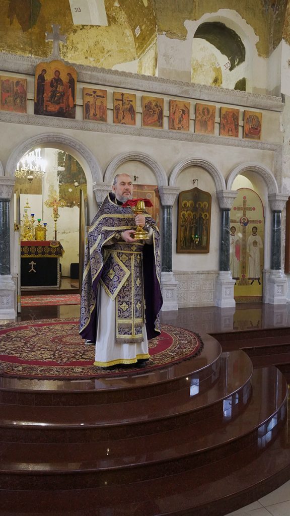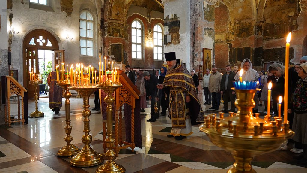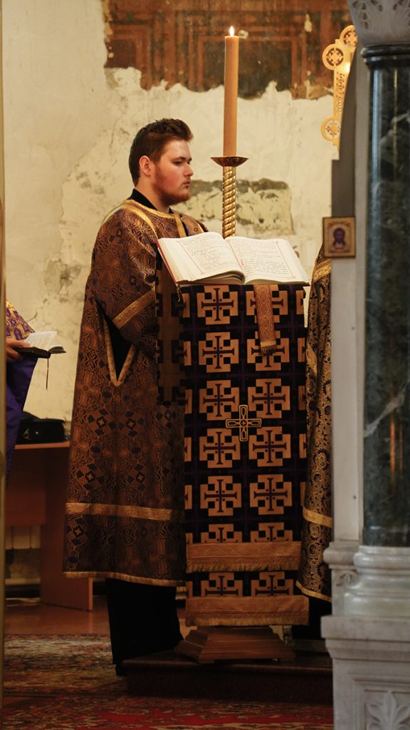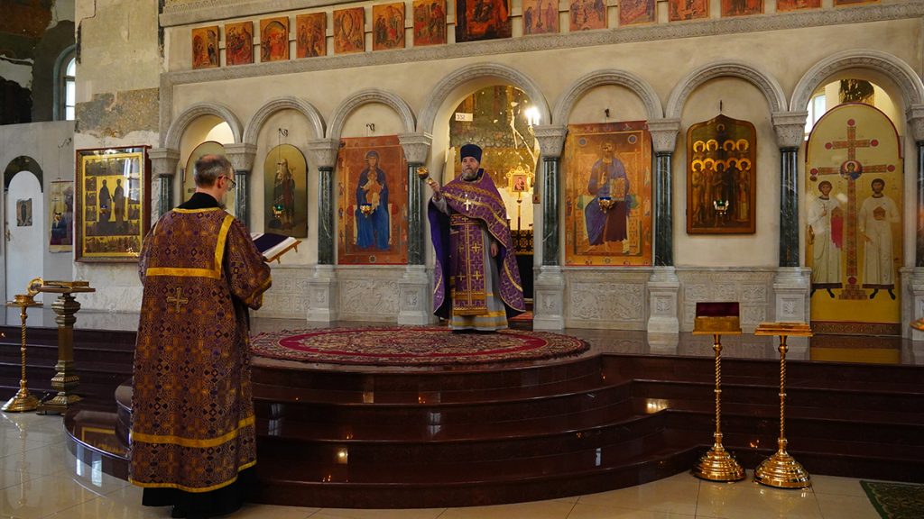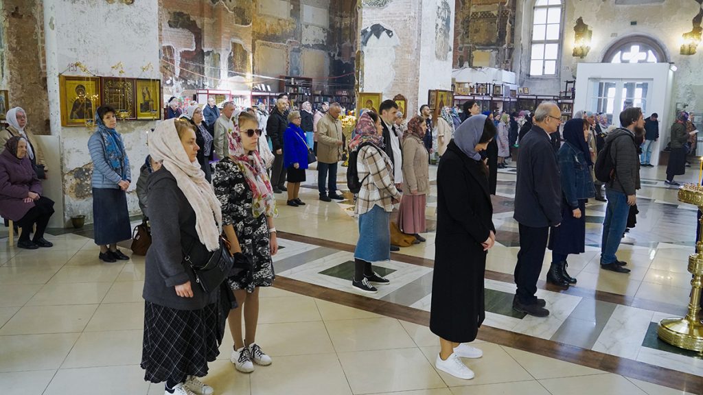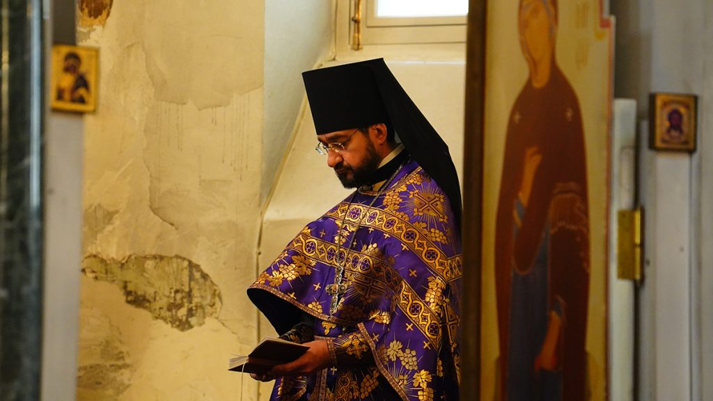 В четверг Страстной седмицы была совершена Божественная литургия в храме прп. Василия Исповедника