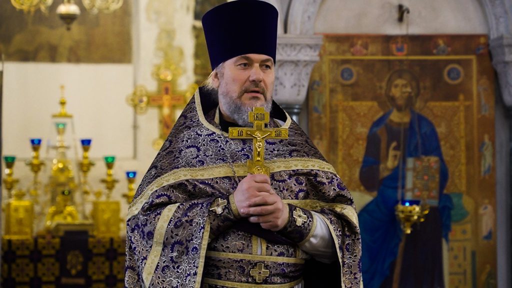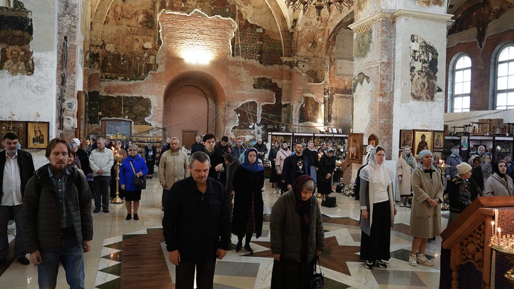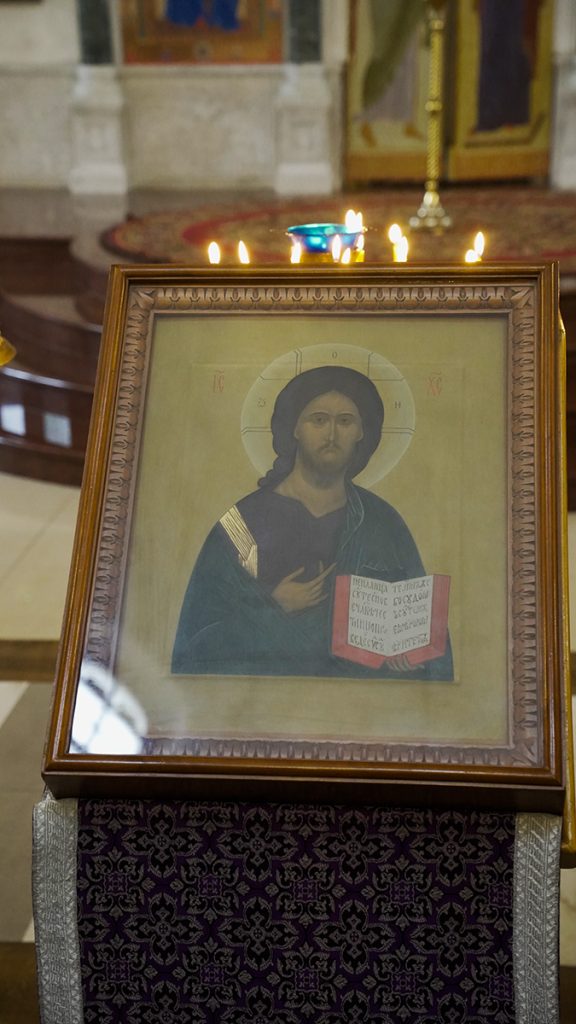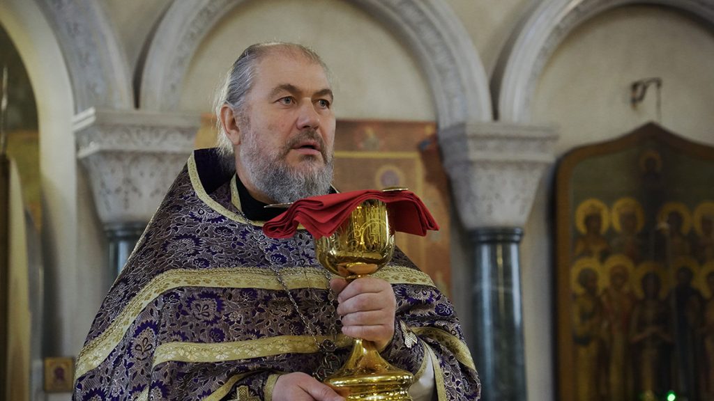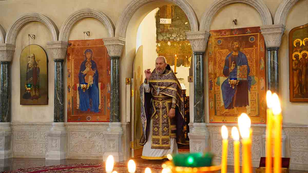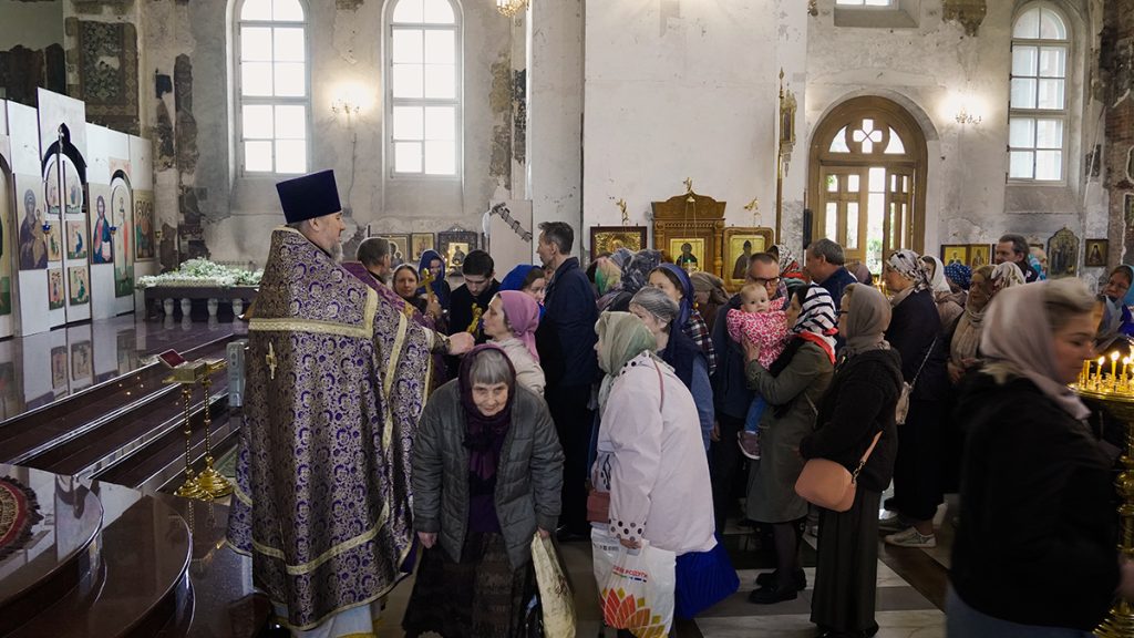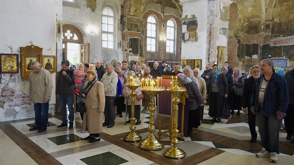 В четверг Страстной седмицы была совершена Божественная литургия в храме прп. Василия Исповедника