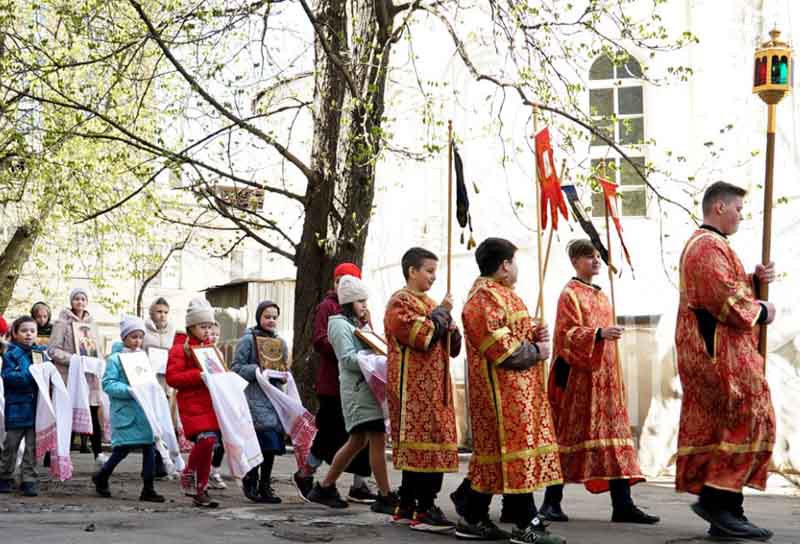 В воскресный день 1 мая, после Божественной литургии состоялся традиционный пасхальный крестный ход с участием воспитанников детской воскресной школы при храме прп. Василия Исповедника у Рогожской заставы. Крестный ход был совершен по благословению благочинного храмов Покровского церковного округа, настоятеля храма протоиерея Олега Егорова.